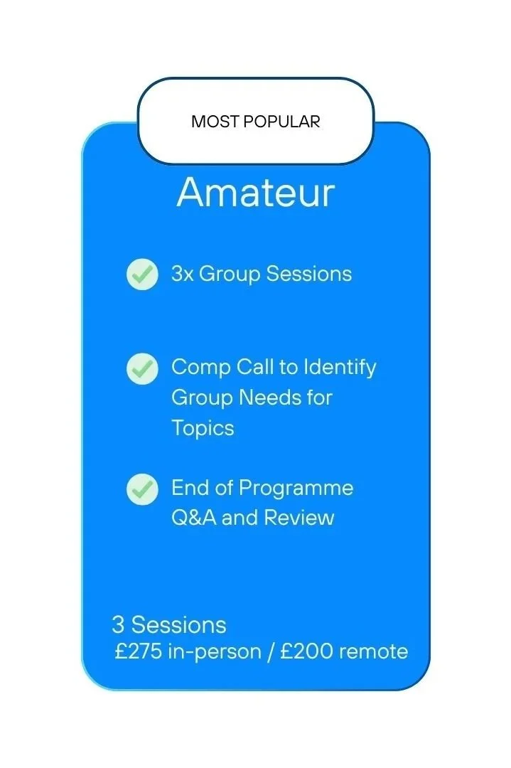 Categories: Select a Category Group Consultations Remote In-person 1-2-1 Consultations Group Consultations Remote | In-person | Quick View Professional (12 Sessions) Package (remote) £700.00 Add To Cart Added! Quick View Semi-Pro (6 Sessions) Package (remote) £375.00 Add To Cart Added! Quick View Amateur (3 Sessions) Package (remote) £200.00 Add To Cart Added! Quick View Standalone Workshop (remote) £75.00 Add To Cart Added! Quick View Amateur (3 Sessions) Package (in-person) £275.00 Add To Cart Added! Quick View Standalone Workshop (in-person) £100.00 Add To Cart Added! Quick View Semi-Pro (6 Sessions) Package (in-person) £525.00 Add To Cart Added! Quick View Professional (12 Sessions) Package (in-person) £1,000.00 Add To Cart Added!